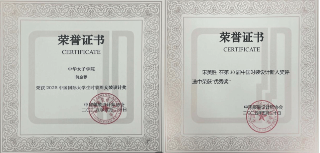 本次毕业季,我院学子不仅在毕业大秀上大放异彩,更在多项权威赛事中捷报频传,硕果累累,以优异成绩为国家级一流专业建设递交完美答卷。中华女子学院斩获“2025中国国际大学生时装周人才培养成果奖”;助力“天才妈妈-非遗焕新公益计划”获贡献奖。