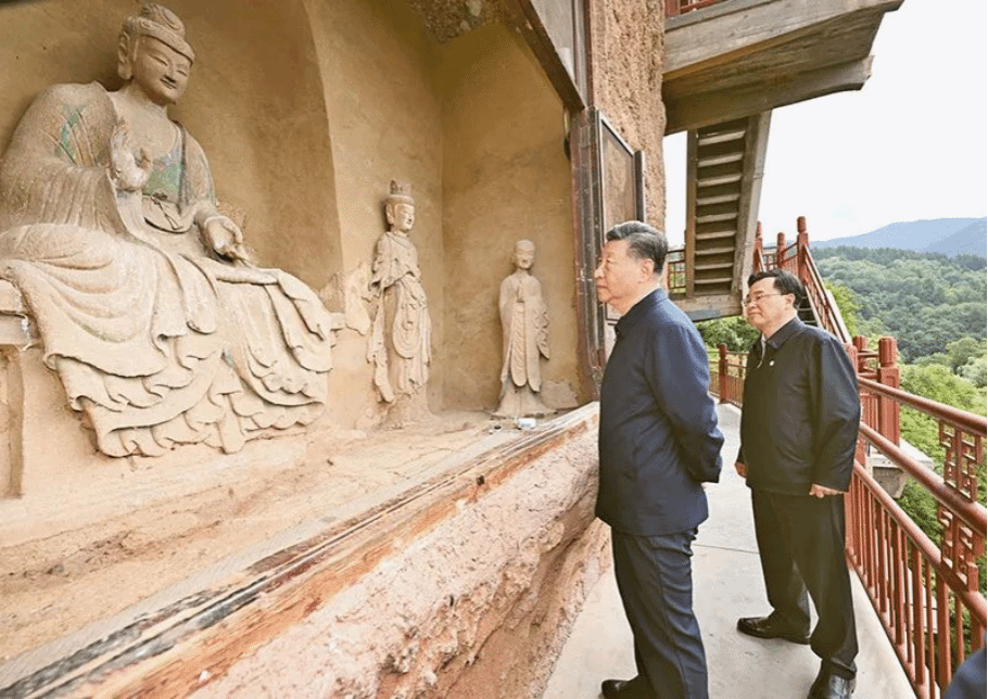 2024年9月10日至13日,中共中央总书记、国家主席、中央军委主席习近平在甘肃考察。这是11日上午,习近平在天水市麦积山石窟考察。 新华社记者 谢环驰/摄