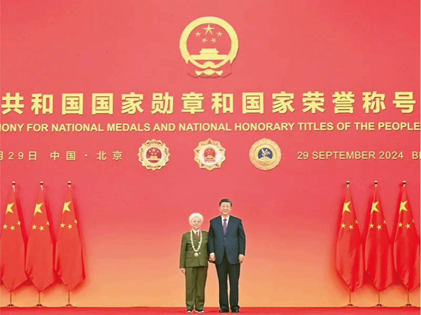 2024年9月29日,中华人民共和国国家勋章和国家荣誉称号颁授仪式在北京人民大会堂金色大厅隆重举行。中共中央总书记、国家主席、中央军委主席习近平向“人民艺术家”国家荣誉称号获得者田华颁授奖章。 新华社记者 谢环驰/摄